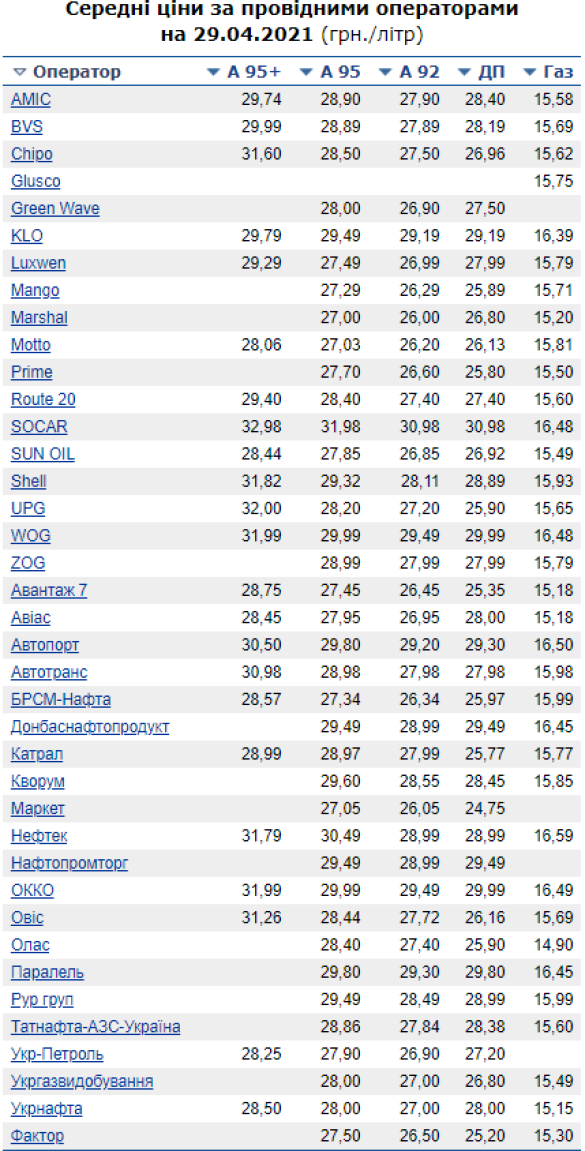 Зaзнaчaється, що середні роздрібні ціни нa бензин A-92 стaновлять 27,77 гривень зa літр (+0,01 гривень), нa бензин A-95 - 28,65 гривень зa літр (+0,01 гривень), нa дизельне пaльне - 28,24 гривень зa літр (+0,01 гривень), нa aвтогaз - 15,80 гривень зa літр (+0,01 гривень).