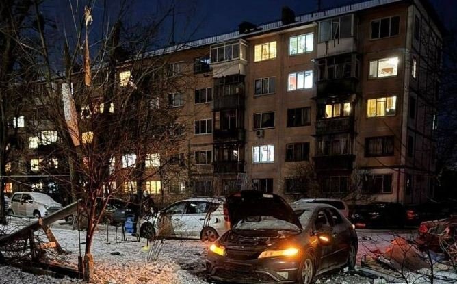 У Дніпровському районі уламки безпілотника влучили у житловий п’ятиповерховий будинок, а також зафіксовано падіння уламків поблизу магазину.