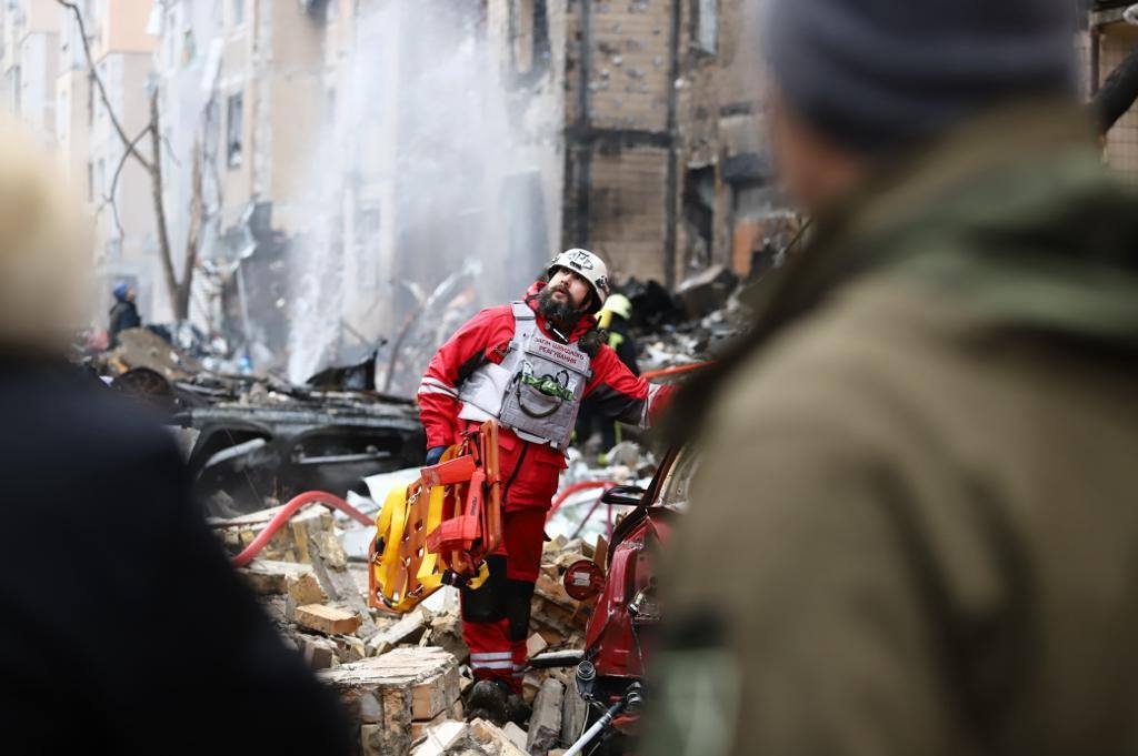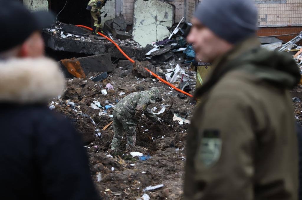 «Виїхав до багатоповерхівки у Соломʼянському районі столиці, де сталося загоряння внаслідок ранкової ракетної атаки. Картина гнітюча… Зараз на місці працюють рятувальники, пожежні, медики. На цю годину одна жінка загинула, постраждали 33 людини. 32 із них медики госпіталізували. Неподалік від будинку організували тимчасовий пункт обогріву, де людям надають необхідну допомогу, – зазначив мер Києва. – Також від ракетної атаки постраждали будівлі у Подільському, Святошинському, Печерському, Оболонському, Деснянському районах. Скрізь працюють екстренні служби. Внаслідок атаки у житлових будинках деяких районів міста відсутня електроенергія та водопостачання. Комунальні служби зараз працюють над їх відновленням», – написав Віталій Кличко.