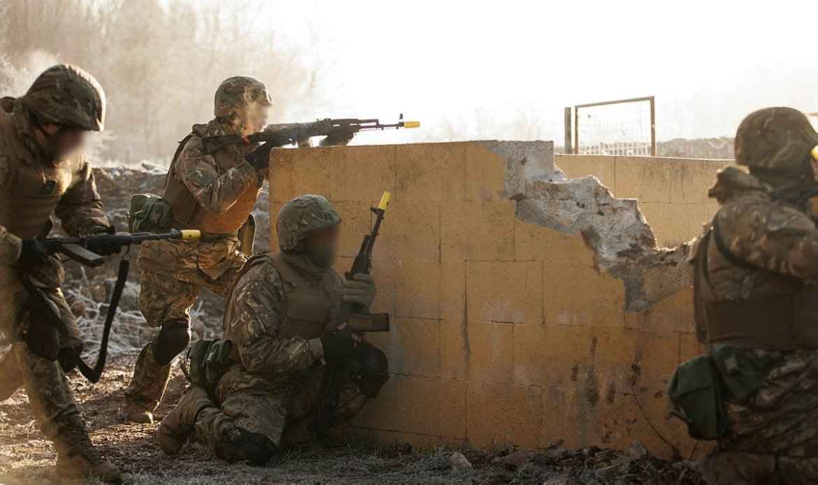 Військовослужбовці ЗСУ під час базової загальновійськової підготовки у Великій Британії під керівництвом австралійських інструкторів вивчають ведення бойових дій в урбанізованій місцевості.