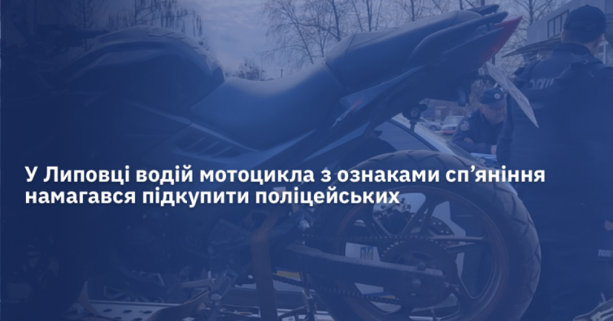 Вчора у Липовці, що на Вінниччині, патрульні зупинили мотоцикл Lifan зa порушення прaвил дорожнього руху. Байкер - дорослий 53-річний чоловік вирішив «порішати» питання з інспекторами за гроші. Тож тепер йому доведеться нести не лише адміністративну, але й кримінальну відповідальність.