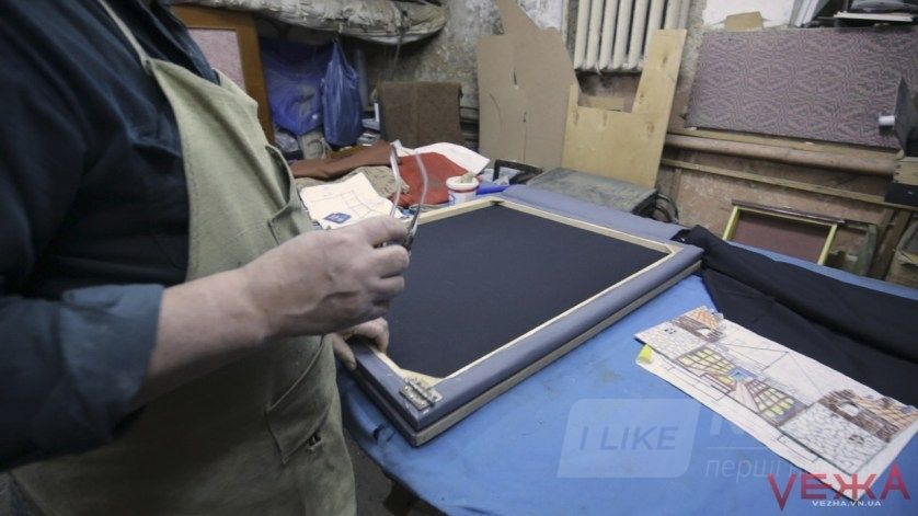 Під час душевної розмови він з особливим захопленням демонструє, як будівельним степлером пришиває тканину до дерев’яного каркасу, тоді хвацько підхоплює молоток, який лежить на столі поряд із акуратно та по-армійськи чітко розставленими іншими інструментами. Забиває цвяшки щільніше. Педантично точно відмірює відстань між кожним цвяшком, паралельно занотовуючи щось на папері.