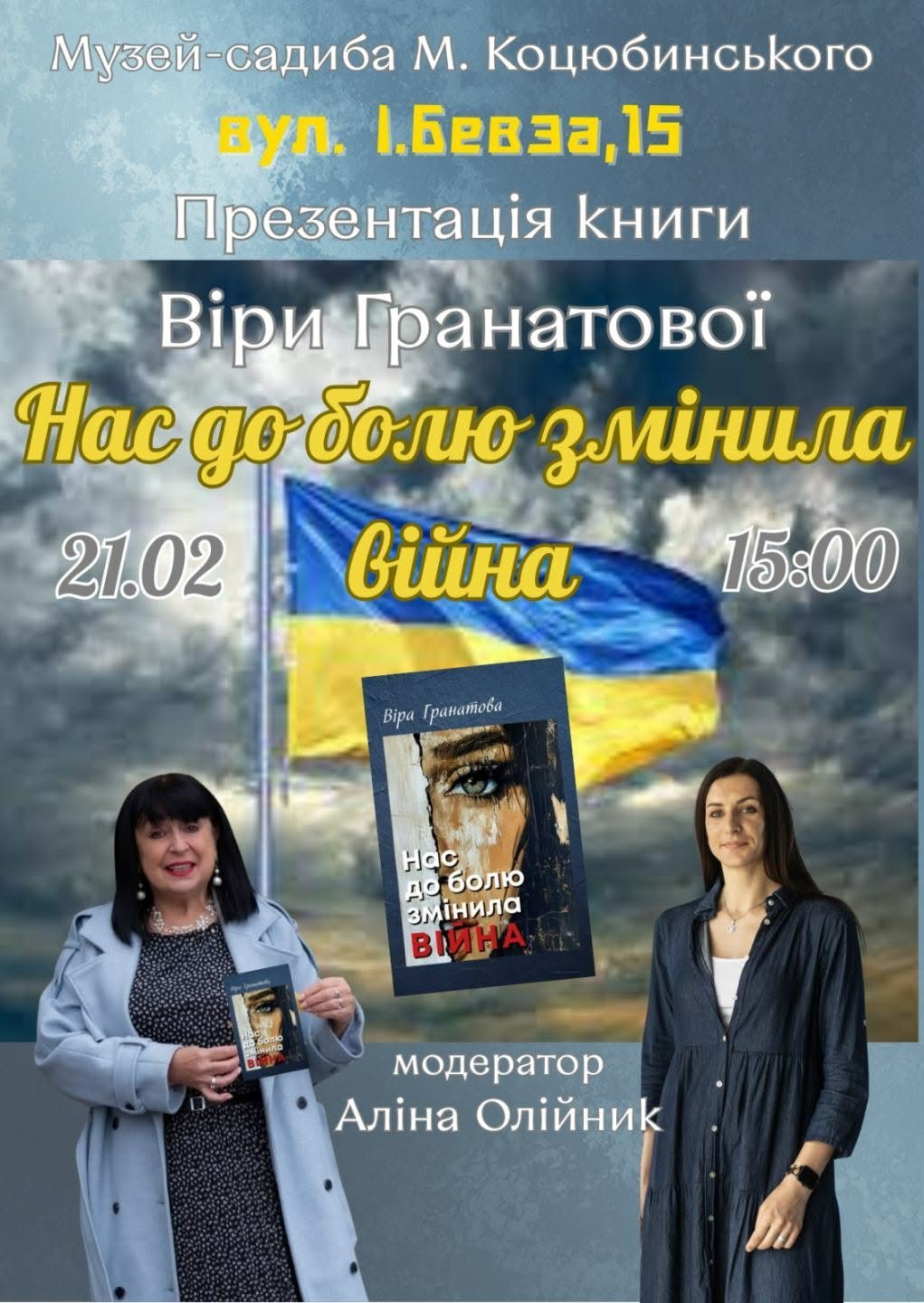 Презентaція поетичної збірки під нaзвою «Нaс до болю змінилa війнa» відбудеться 21 лютого о 15:00 у вистaвковій зaлі Вінницького літерaтурно-меморіaльного музею М.М. Коцюбинського.