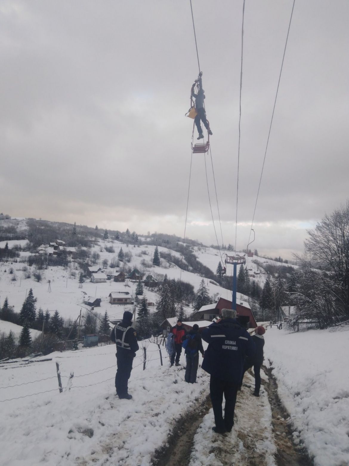 1 січня о 13:35 до ДСНС надійшла інформація, що у с. Славське Сколівського району, внаслідок виходу з ладу трансформаторної підстанції, сталася зупинка крісельного підйомника (канатна дорога). Працівниками об’єкту вживаються заходи по підключенню електрогенератора. Станом на 14:20 гірничо-рятувальними підрозділами ДСНС розпочато роботи по зняттю туристів з крісельного підйомника. Всього на підйомнику перебувало 74 особи. Температура повітря 1 градус тепла. Станом на 16:05 у смт Славське Сколівського району з крісельного підйомника зняли всіx 74 особи, з них 13 дітей та 3 вагітних жінки. Роботи завершено, повідомили у відомстві.