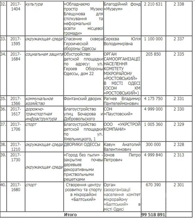Звичайно, кожен автор проекту скаже, що його ініціатива найважливіша для міста. Це зрозуміло: кожен кулик своє болото хвалить. Але «Громадський бюджет» не «гумовий», і тому кошти отримають не всі. Переглянемо загальний рейтинг переможців голосування.