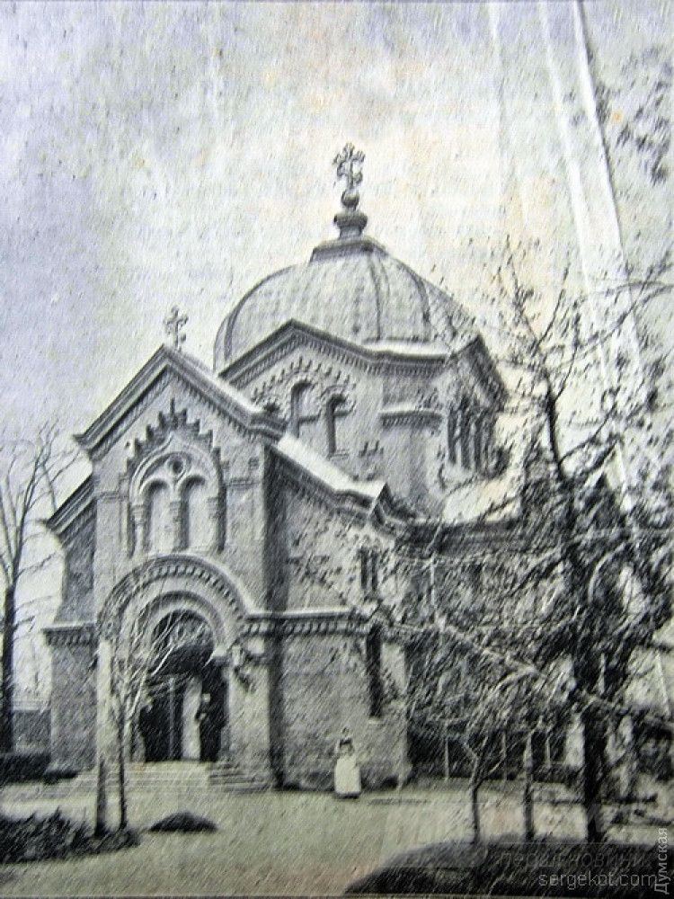 Здание храма после постройки. Обратите внимание, какие метаморфозы оно претерпело за 100 лет. Колокольни никогда здесь не былоК хрaму-пaмятнику нa Фрaнцузском бульвaре незaконно пристрaивaют колокольню