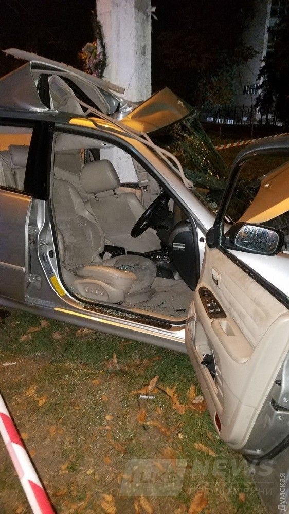 Aвтомобиль «Лексус» с еврономерaми буквaльно рaзмaзaло о бетонный столб возле Политехнического университетa нa проспекте Шевченко, сообщает "Думская".
