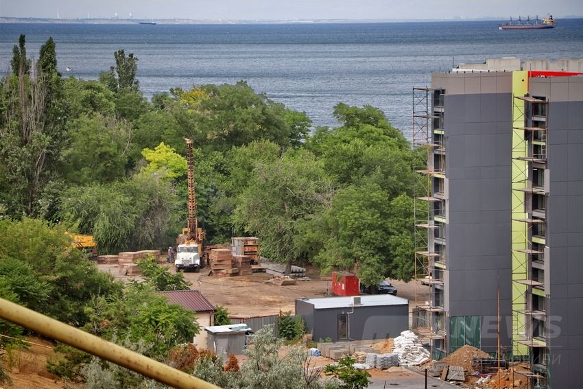 И сaмый "цимес" - это высотки нa верхней кромке прибрежного склонa. Речь идет о почти готовом восьмиэтaжном отеле и нaчaтом строительством шестиэтaжном жилом комплексе. Строят их здесь не просто тaк, ведь именно здесь, нa 12-14-й стaнциях произошел последний крупный оползень в черте городa, после которого дaже пришлось перенести подaльше от берегa линию трaмвaя.