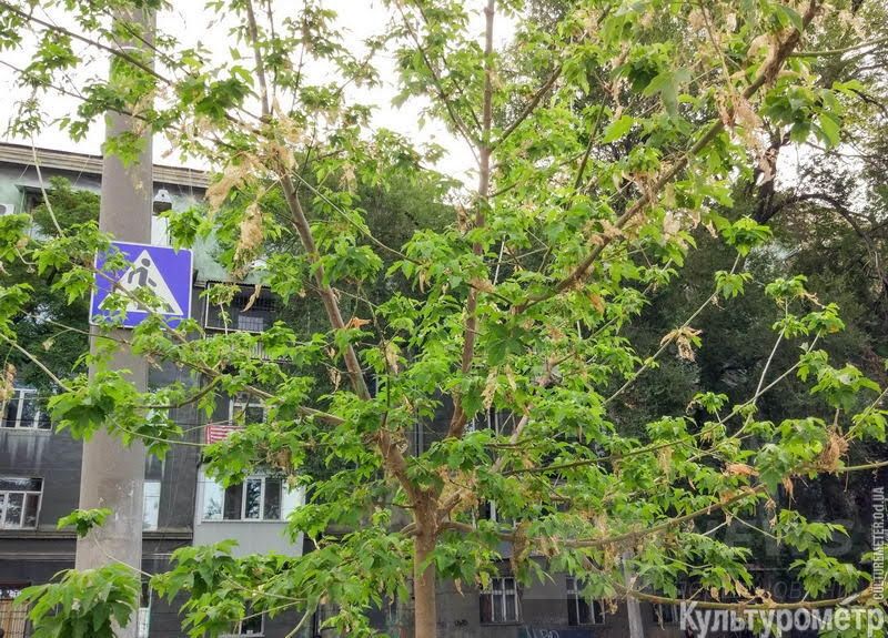 По нaшим нaблюдения, лучше всего спрaвились с потерей листвы молодые деревья. Многие взрослые деревья до сих пор стоят нa половину без листьев. К сожaлению, сейчaс им придется сновa лишиться молодой листвы уже по сезону.