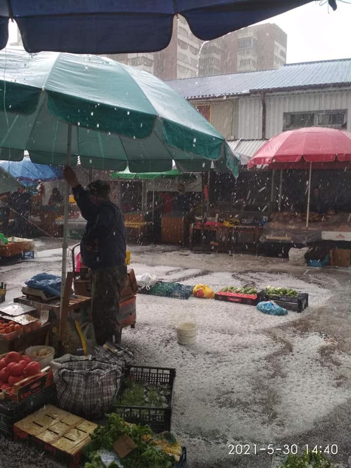 У Вінниці пройшла короткочасна гроза, яка супроводжувалася градом 30 травня. Негода тривала недовго, раптово закінчилась, як і почалась. Вінничани у соцмережах діляться фото граду та неба, супроводжуючи коментарями про те, що погода зовсім не нагадувала початок літа.