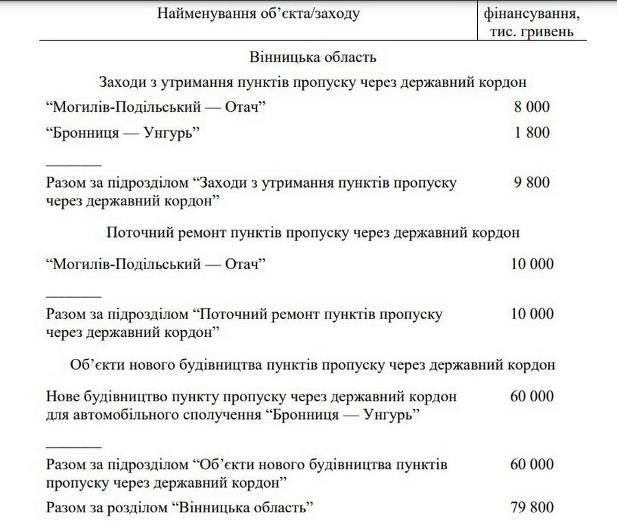На Вінницьку область заплановано 79,8 млн грн, які спрямують на такі об’єкти: