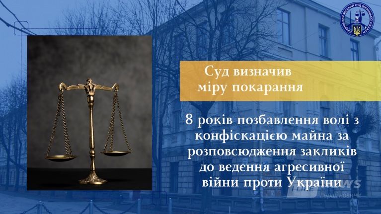 Вінницький міський суд Вінницької області виніс вирок чоловікові, якого визнано винним у закликах до ведення агресивної війни проти України та порушенні територіальної цілісності держави.