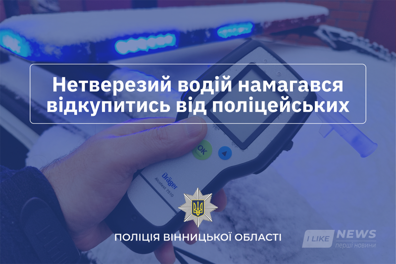 Освідування показало 2,05 проміле алкоголю в організмі. Під час оформлення адміністративних матеріалів чоловік спробував «вирішити питання» та запропонував правоохоронцям хабар у розмірі 17 000 гривень.