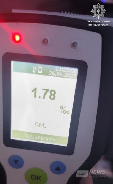 Під час спілкування з хлопцем інспектори виявили у нього явні ознаки алкогольного сп’яніння. Перевірка на "Драгері" показала 1,78 проміле — це майже у 9 разів більше за допустиму норму.