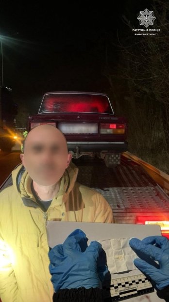 Поведінка водія була помітно нервовою, тож патрульні провели поверхневу перевірку. У результаті в нього виявили паперовий згорток із білою кристалічною речовиною, яка, ймовірно, є забороненою. Крім того, правоохоронці встановили, що чоловік уже позбавлений права керування транспортними засобами.