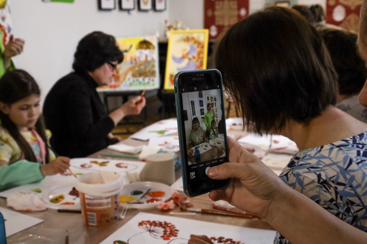 Разом із майстринею Ольгою Домбровською учасники доторкнулися до історії цього унікального розпису, який зародився у XVIII столітті в селі Петриківка. Присутні дізналися про значення квітів, птахів і візерунків, які колись прикрашали стіни хат, скрині й побутові речі, а сьогодні є визнаною частиною нематеріальної спадщини ЮНЕСКО.