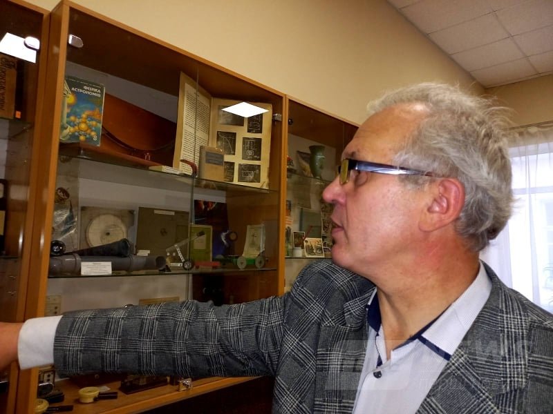 Поряд з фоліантом батька педагогіки Ушинського знаходиться не менш «фундаментальний» експонат. Він демонструє, як працює парова турбіна, а створено його за принципом, вигаданим ще древньогрецьким фізиком Героном.