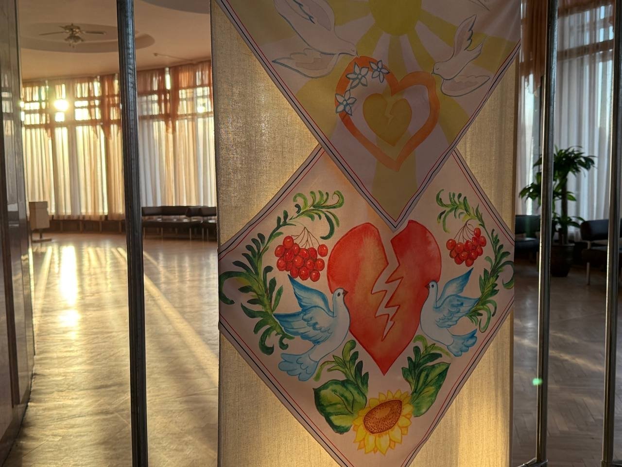 На тканині також з’являлися обриси ластівок і голубів, які несуть вість про мир, а поруч символи військових підрозділів, у яких служили їхні сини. Так матері увічнювали пам’ять про їхній подвиг і зберігали частинку їхнього життя у мистецтві.