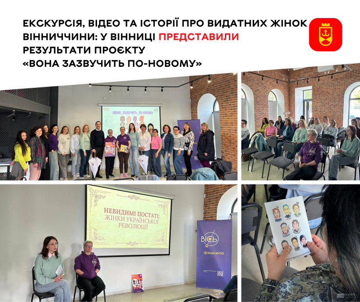 У Вінниці представили підсумки масштабного правозахисного проєкту «Вона зазвучить по-новому», який протягом 10 місяців розповідав про видатних жінок Вінниччини через пішохідну екскурсію, три відеоекскурсії та сторінку в Instagram.