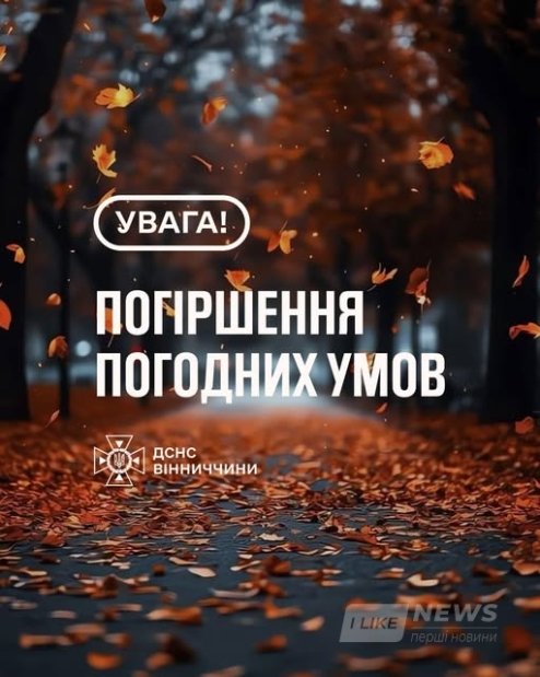 За прогнозом синоптиків, 11 жовтня на Вінниччині очікуються пориви вітру 15–20 м/с.