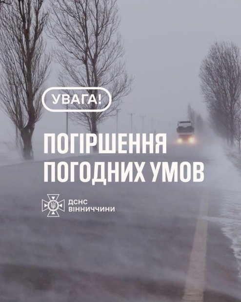 16 лютого у Вінницькій області прогнозують ускладнення погодних умов. Очікуються пориви вітру швидкістю 15–20 м/с, на автошляхах утвориться ожеледиця, а в нічний час можливі хуртовини. Встановлено І рівень небезпечності — жовтий.