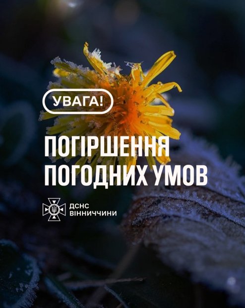 На території Вінницької області 8–9 квітня очікуються заморозки на поверхні ґрунту від 0 до –3°C. У зв’язку з цим оголошено І рівень небезпечності — жовтий. Про це повідомили на сайті Головного управління ДСНС у Вінницькій області.