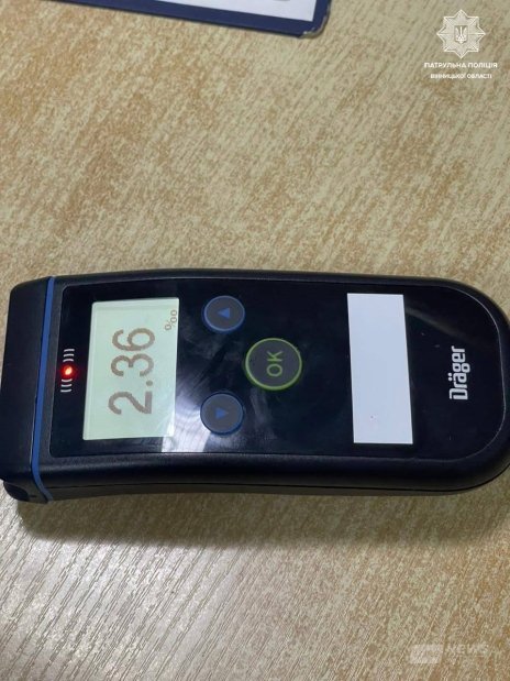 Водій погодився пройти медичний огляд, за результатами якого в його організмі виявили 2,36 проміле алкоголю— це майже у 12 разів перевищує допустиму норму.