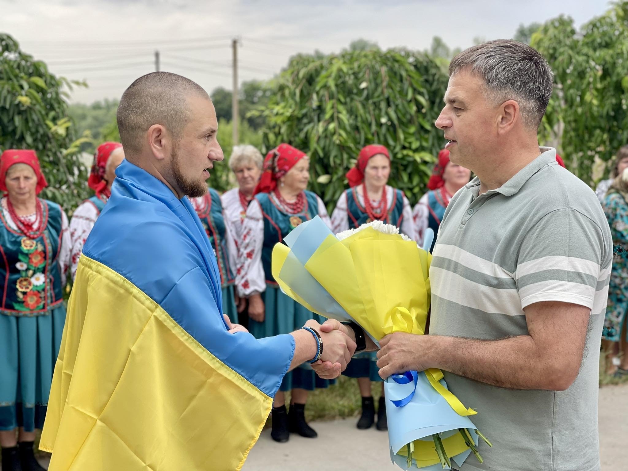 Учора Федір тихо приїхав додому, до рідного села. Його зустріли найрідніші — дружина, син і донька. А сьогодні разом із громадою мали честь привітати його біля школи в Бирлівці. Це була щира, емоційна, але дуже делікатна зустріч — така, якої заслуговує кожен герой.