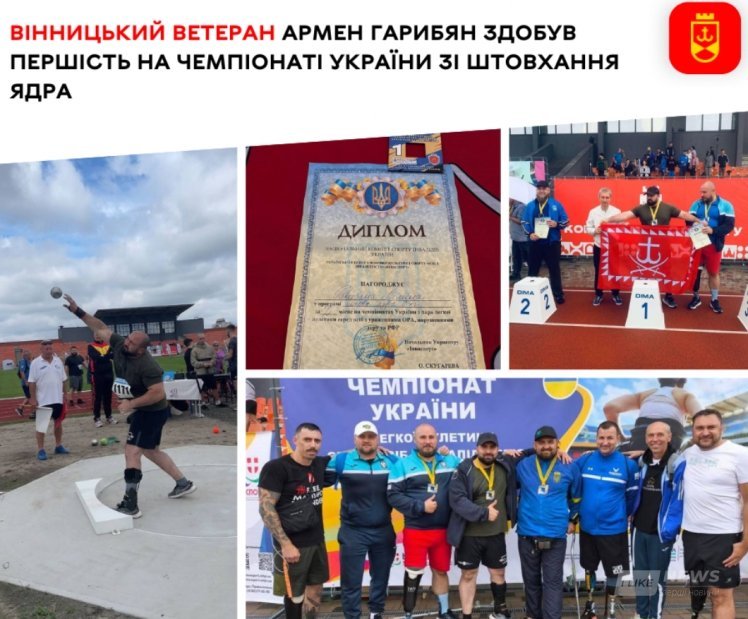 Армен Гарибян, ветеран російсько-української війни та спортсмен Вінницького регіонального центру «Інваспорт», виборов золото на чемпіонаті України зі штовхання ядра (6 кг) серед спортсменів з ураженням опорно-рухового апарату. Змагання проходили з 28 по 31 липня у місті Ковель на Волині.