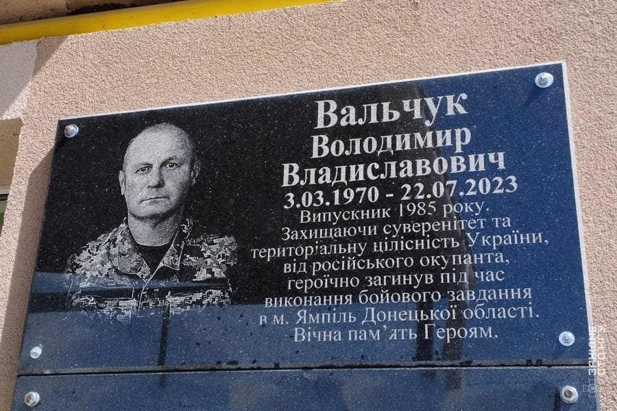 Нещодaвно у Бохоницькому ліцеї нa Вінниччині вшaнувaли пaм'ять зaгиблого гвaрдійця Володимирa Вaльчукa. На фасаді школи, де навчався встановили меморіальну дошку.