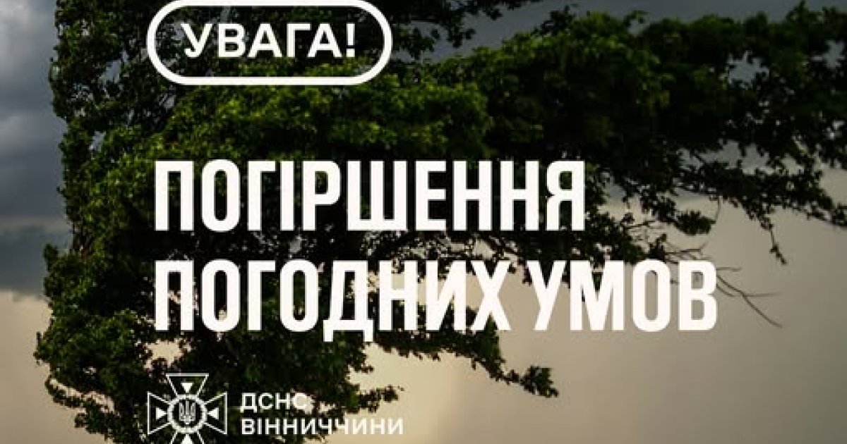 За даними Укргідрометцентру, у суботу, 15 червня, у Вінницькій області очікується погіршення погодних умов. Прогнозуються пориви вітру 15–20 метрів за секунду. Оголошено I рівень небезпечності (жовтий). Про це йдеться в повідомленні пресслужби ДСНС у Вінницькій області.