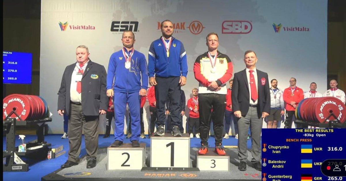 На Чемпіонаті Європи з класичного жиму лежачи, що відбувся у Мальті, спортсмен у ваговій категорії 83 кг показав неймовірний результат — 316 кг. .