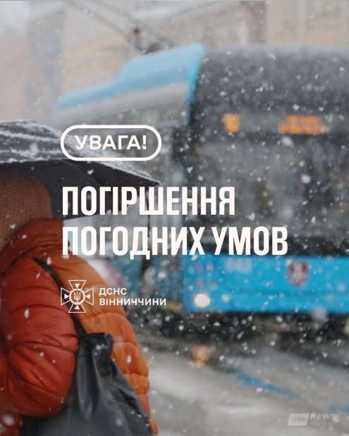 Увага! 6 квітня на Вінниччині очікується мокрий сніг, ожеледиця на дорогах і місцями налипання мокрого снігу.