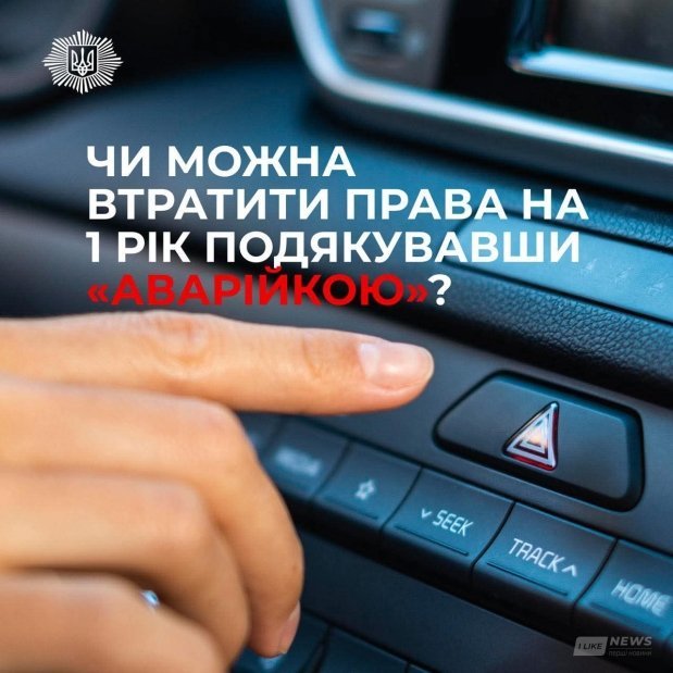 У мережі шириться фейкова інформація про те, що за коротке ввімкнення аварійної сигналізації на знак подяки можна втратити водійські права на рік. Це — неправда.