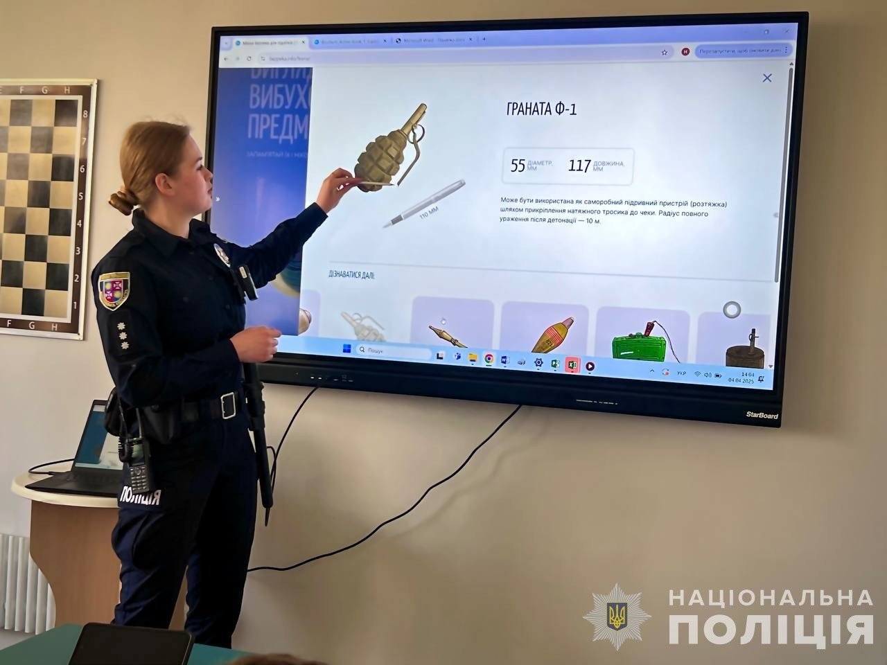 Окремий блок уроку був присвячений мінній безпеці. Дітям доступно пояснили, як розпізнати підозрілі предмети, яких правил слід дотримуватися у разі виявлення небезпеки та чому варто бути обережними навіть у звичних місцях — на вулиці, в полі чи на шкільному подвір’ї.