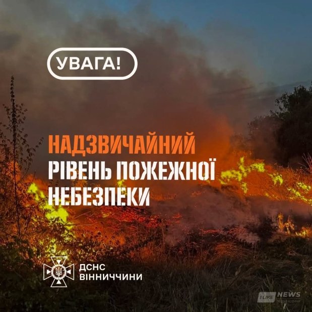 Як повідомляє ДСНС, у період з 5 по 7 вересня на території Вінницької області очікується надзвичайний рівень пожежної небезпеки — 5 класу.