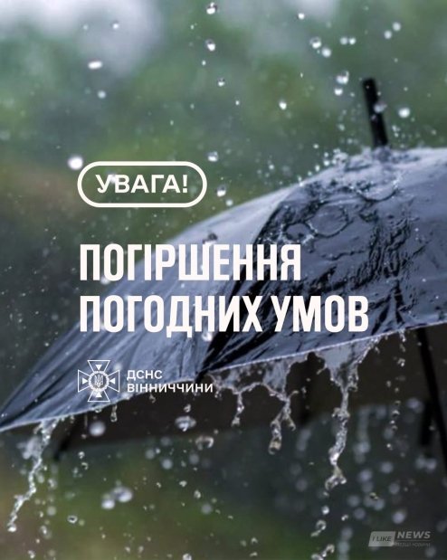 На 18 липня синоптики прогнозують у Вінницькій області погіршення погодних умов. За інформацією, оприлюдненою на сторінці Головного управління ДСНС України у Вінницькій області, регіон накриє гроза, можливі сильні пориви вітру швидкістю 15–20 метрів за секунду. Також протягом дня очікується значна кількість опадів — від 15 до 49 мм.
