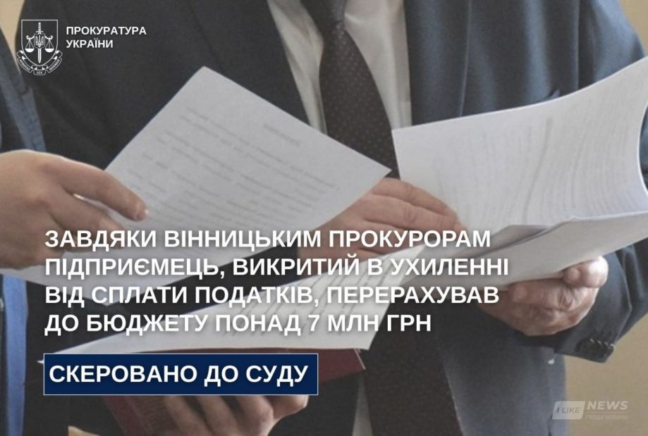 Завдяки роботі прокурорів Вінницької обласної прокуратури спільно з ТУ БЕБ у Вінницькій області підприємцем з оптової торгівлі деревиною, будматеріалами та сантехнічним обладнанням відшкодовано державному бюджету понад 7 млн грн.
