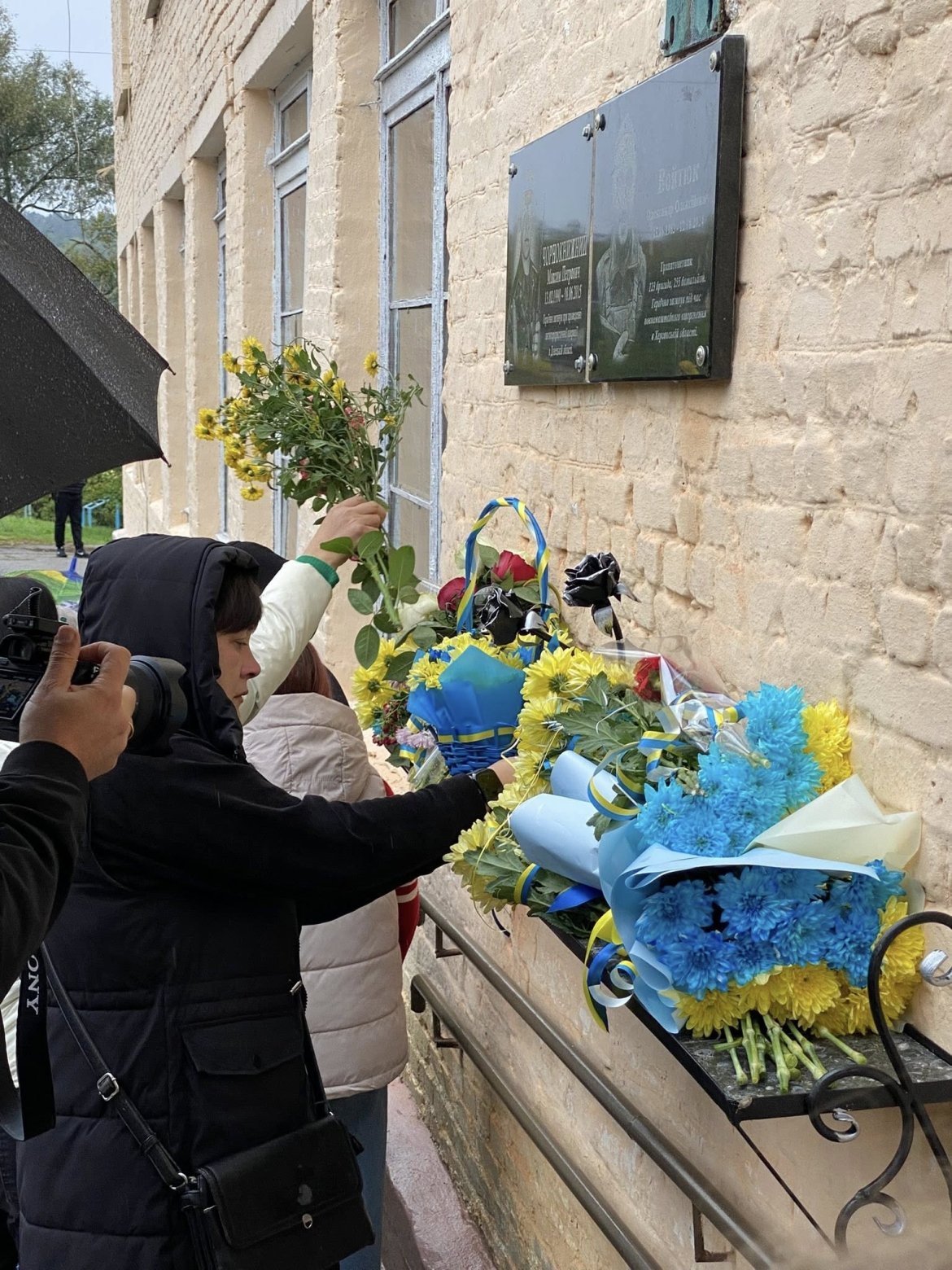 «В ім’я світлої пам’яті Сашка нині тут відкрито меморіальну дошку. Саме у цій школі починався його шлях у доросле життя, і тут тепер залишиться знак, що нагадуватиме дітям, якою ціною здобувається свобода», — зазначив очільник громади.