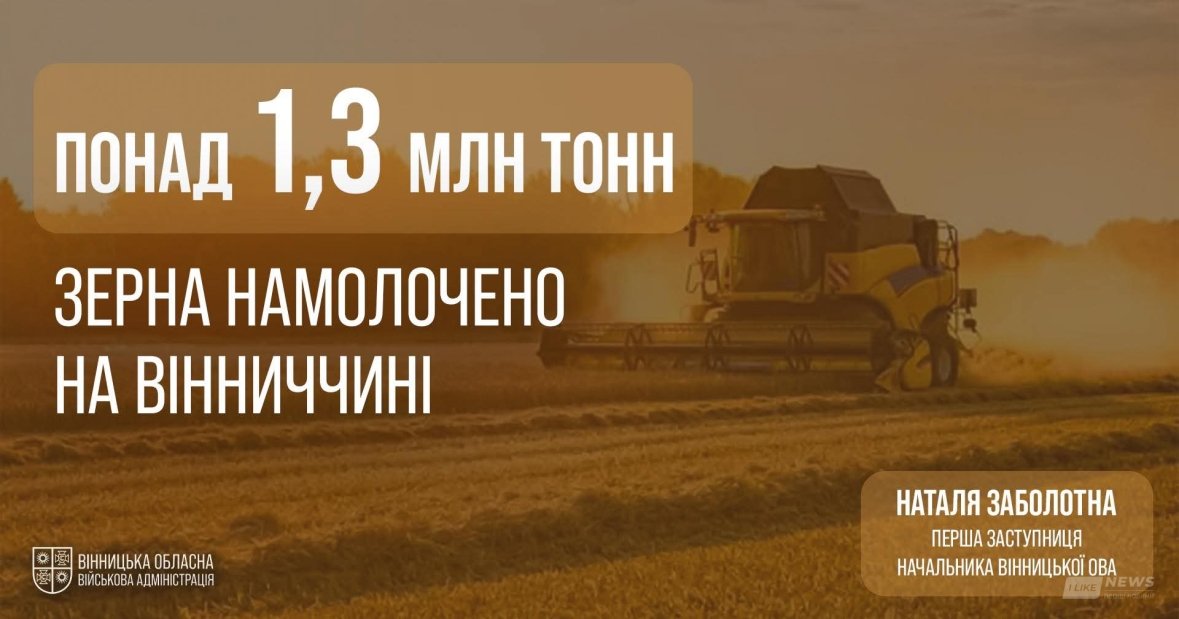 Станом на початок серпня аграрії Вінницької області намолотили понад 1,3 млн тонн зерна ранніх зернових і зернобобових культур урожаю 2025 року. Середня урожайність становить 62,3 центнера з гектара.