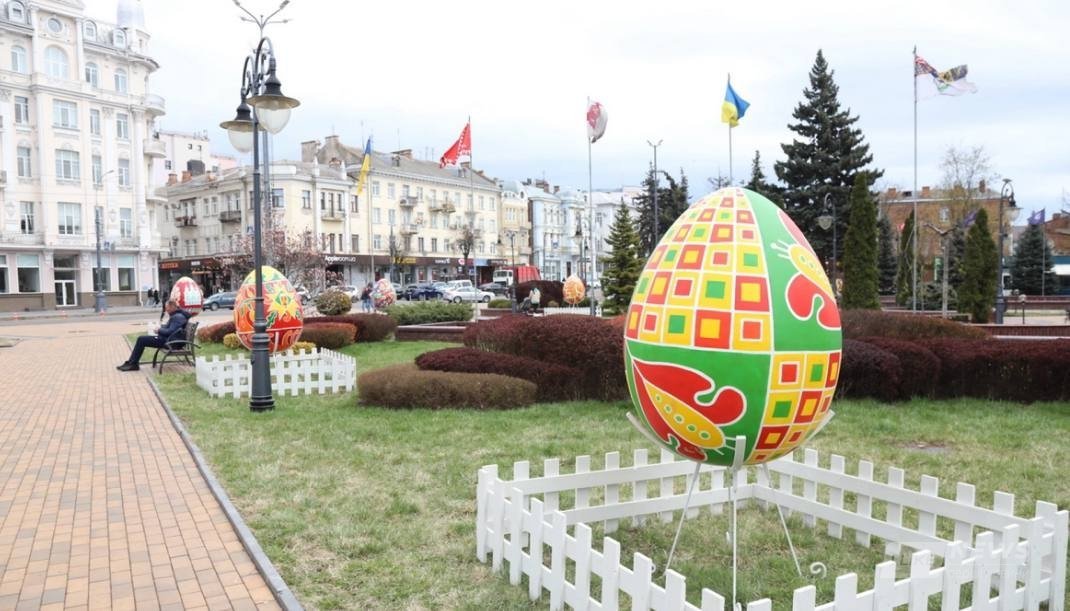 16 квітня на Майдані Незалежності біля Вінницької міської ради з’явилися 14 велетенських великодніх писанок. Хоча зазвичай пасхальні декорації у місті встановлювали у Чистий четвер, цього року їх почали монтувати у середу.