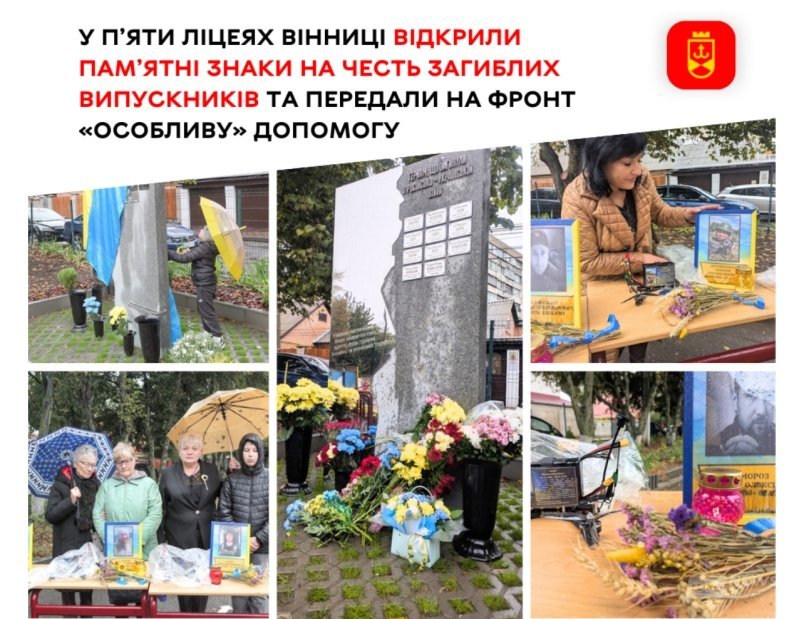 Сьогодні у вінницьких ліцеях №5, 10, 16, 23 та 31 відкрили пам’ятні знаки з іменами випускників-Героїв, які віддали своє життя за свободу і мир України. Кожне ім’я на обеліску – це історія мужності, відваги та любові до рідної землі. Про це повідомляє Вінницька міська рада.