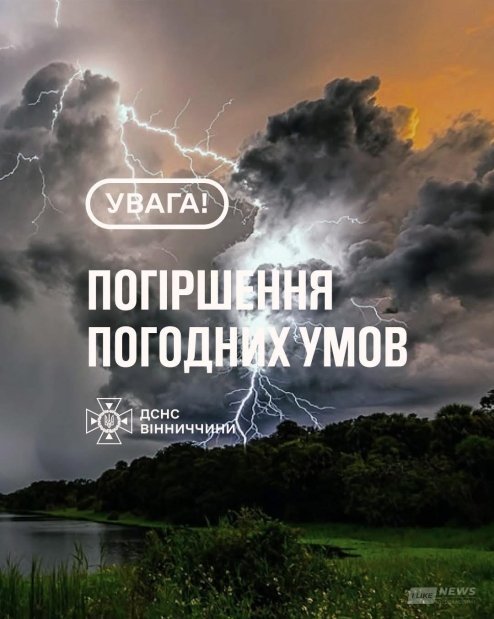 24 травня на території Вінницької області очікується ускладнення погодних умов. Синоптики попереджають про грозу, подекуди — град та пориви вітру зі швидкістю 15-20 м/с. Кількість опадів може сягати 6-19 мм. Оголошено I рівень небезпеки — жовтий. Будьте обережні та за можливості уникайте перебування на вулиці під час негоди.