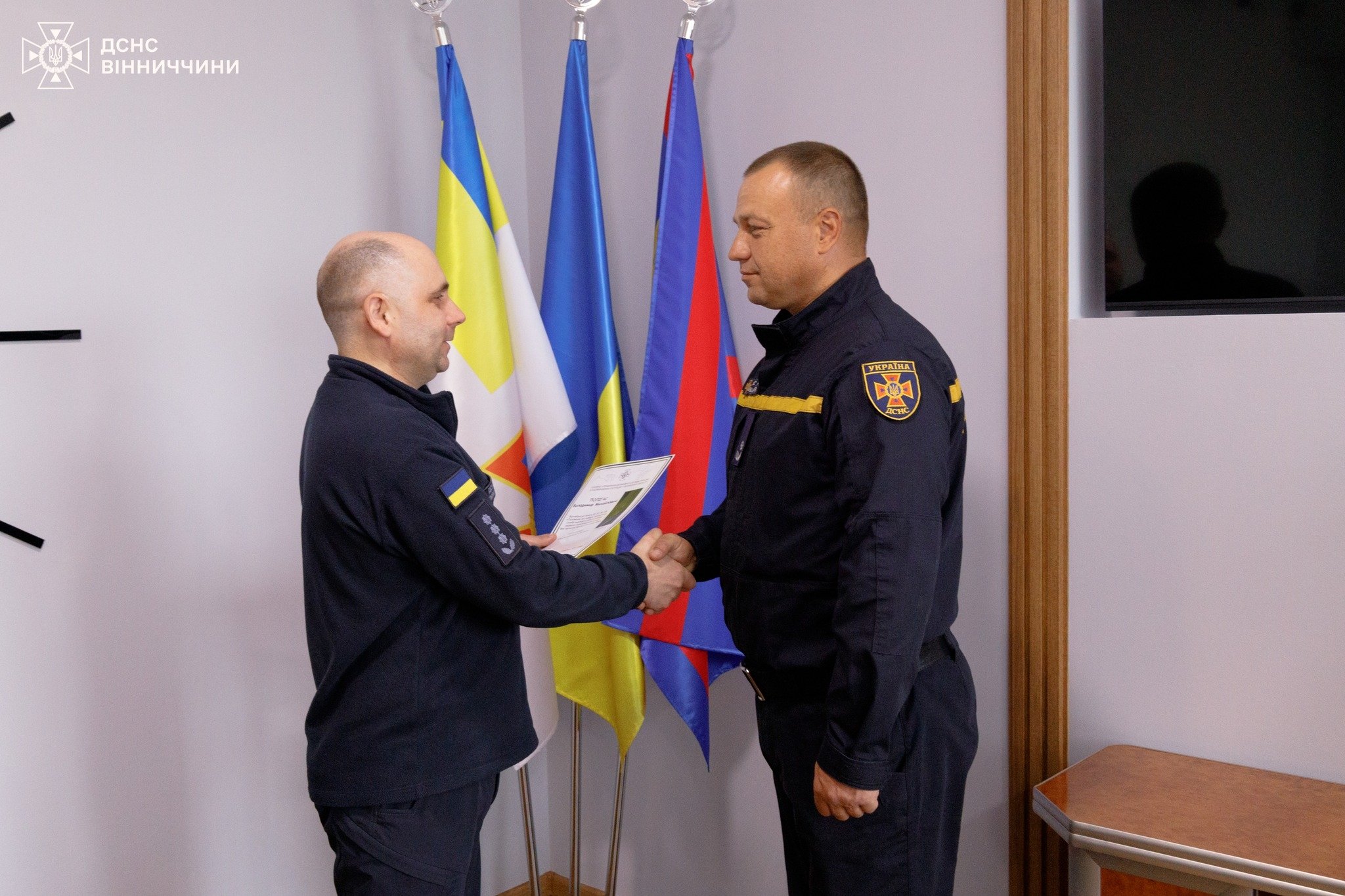 Окрім цього, Грамотою ДСНС України відзначили Максима Вінницького — водія-інструктора з кінології аварійно-рятувального загону спецпризначення — за професійність і віддану працю. Подяку від Головного управління отримала також старша психологиня Тетяна Хруленко.