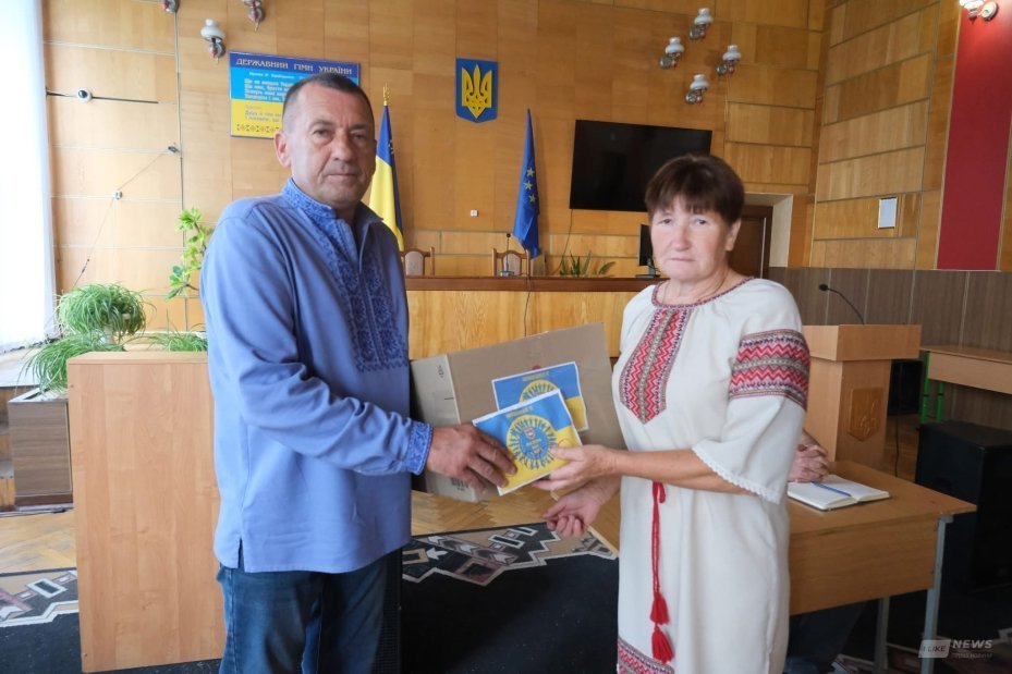 На щотижневій нараді у Липовецькій міській раді керівник волонтерської групи Геннадій Терлецький вручив амуніцію Валентині Гривківській, матері військовослужбовця 59-ї окремої мотопіхотної бригади Віталія Гривківського.