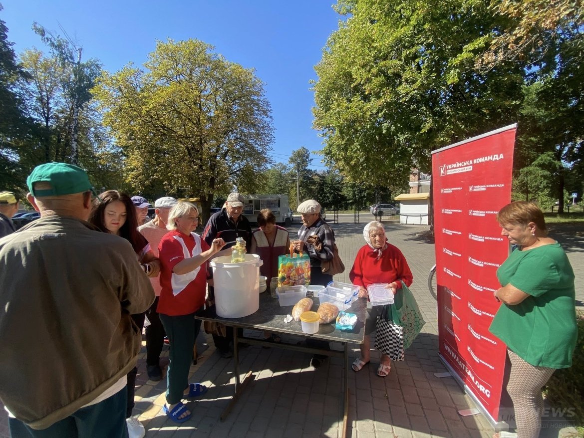 У центрі Гайсина вже стало доброю традицією – щонеділі волонтери «Української команди» роздають гарячі обіди всім, хто цього потребує. Ця ініціатива триває кілька місяців і допомагає сотням мешканців міста та переселенцям отримати теплу їжу й підтримку.