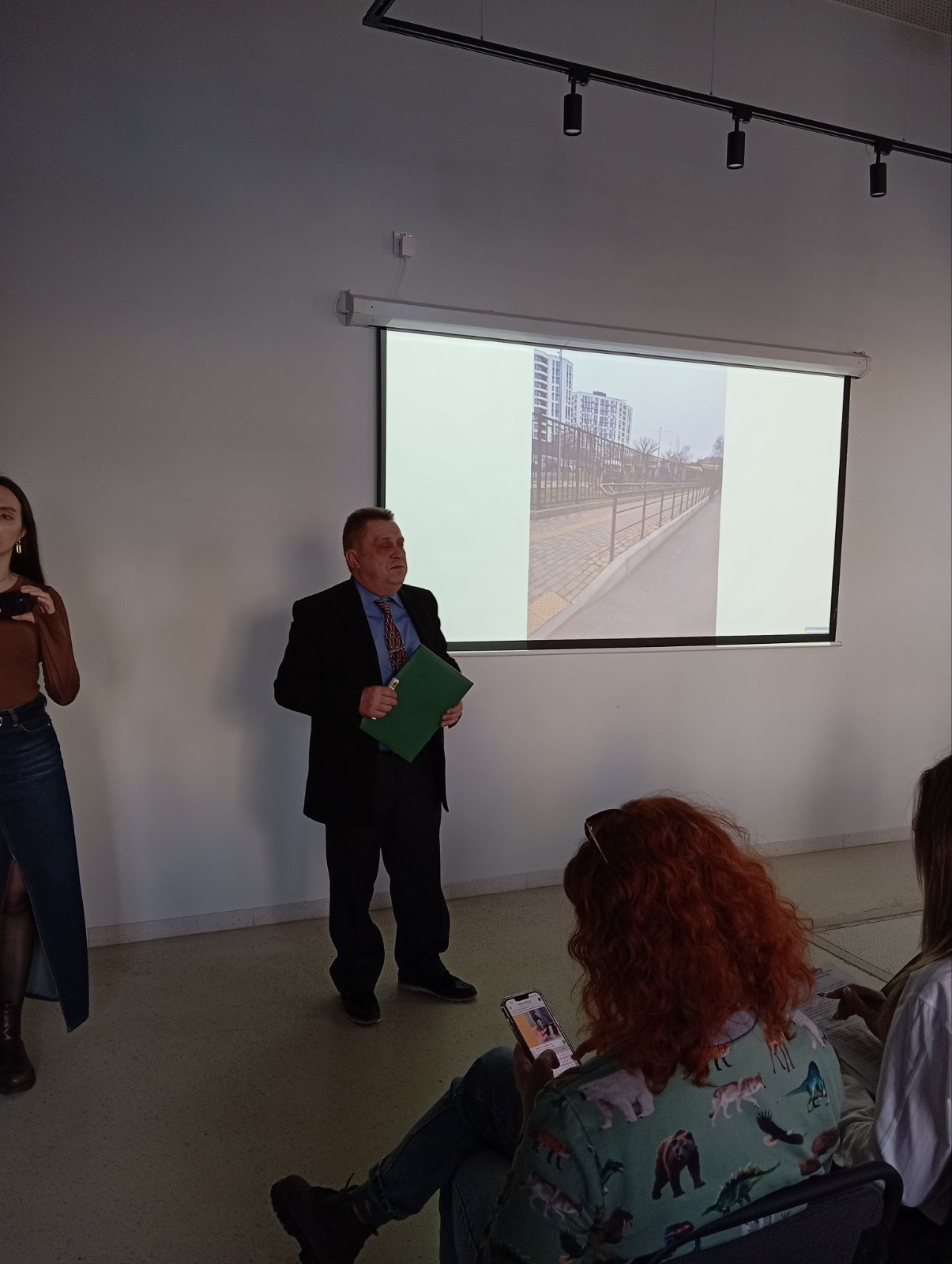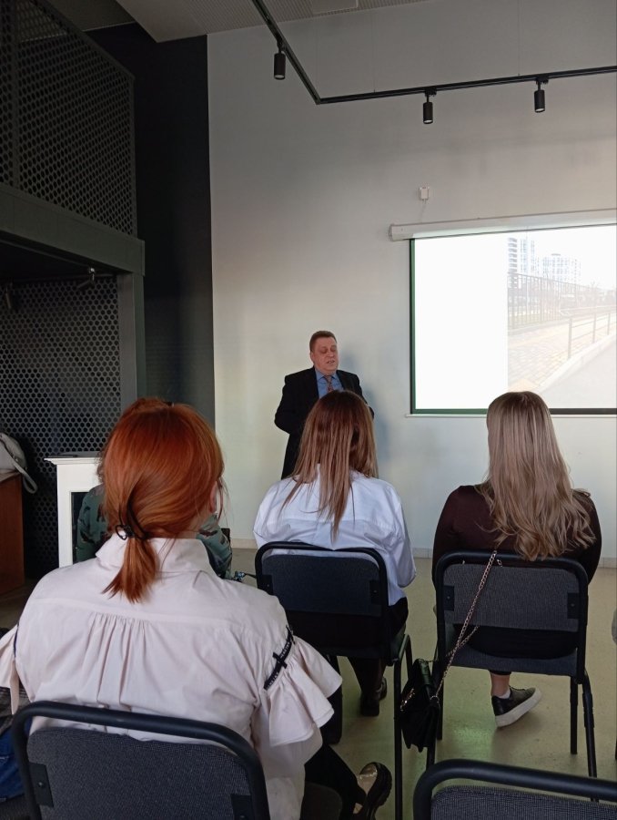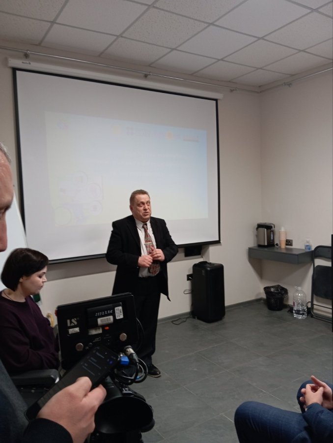 Керівниця відділення реабілітації осіб з порушеннями зору Центру комплексної реабілітації «Поділля» Юлія Бабаєва прийшла разом із ветераном війни Артемом. Вони розповіли про орієнтування незрячих у просторі. Також йшлося про базові техніки супроводу, спеціальні застосунки для смартфону тощо.