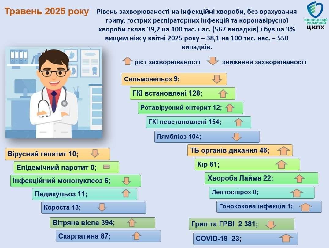 У травні 2025 року у Вінницькій області зареєстровано 22 випадки бореліозу (хвороби Лайма) — це в 1,8 раза більше, ніж у квітні, і майже втричі більше, ніж у січні. Про це інформує обласний центр контролю та профілактики хвороб МОЗ України.