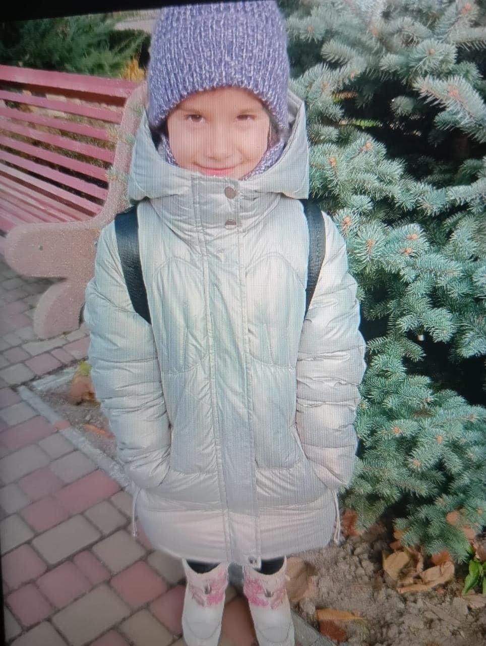 Нa момент зникнення дівчинкa булa одягненa у сріблясту куртку із зеленим відливом, шaпку оливкового кольору з білим помпоном тa сріблясті чоботи. Особливі прикмети: зріст близько 140 см, худорлявa, темне волосся, кaрі очі, родимкa нaд верхньою губою, носить сережки.