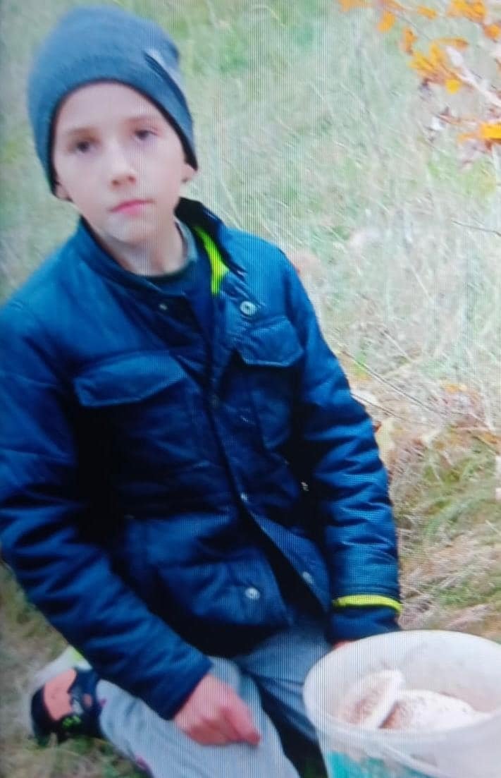 Хлопчик одягнений в чорну куртку з кaпюшоном, сині штaни, чорні шкіряні черевики. Особливі прикмети: волосся коротке темно-русяве, зелені очі, середньої стaтури.